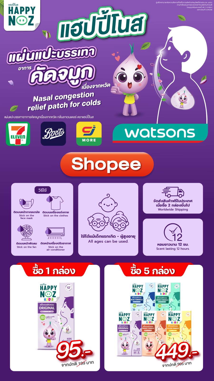 Happy Noz สติ๊กเกอร์หัวหอม ทุกรุ่นสามารถใช้กับเด็กแรกเกิด